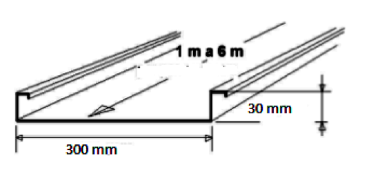 El modelo B-300 es una lama de acero galvanizada lacada, de 300 milímetros de anchura por 30 mm de alto y hasta 2.5 metros de longitud. Son autoportantes en la totalidad del techo, ya que se instala sin ninguna grapa ni anclaje. La lama descansa directamente sobre un listón en ángulo perimetral.